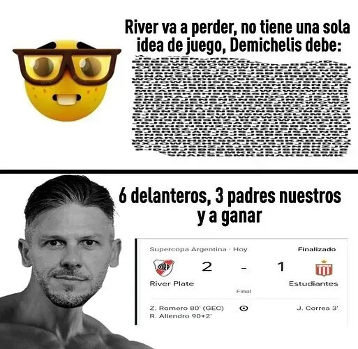 ¡Nuñez está de fiesta otra vez! River superó a Estudiantes de La Plata en la final de la Supercopa Argentina y consiguió su primer título del año, el tercero desde que asumió Martín Demichelis. Por eso, como de costumbre, en La Página Millonaria te traemos los mejores memes de la victoria ante el Pincha para compartir con tus amigos.
