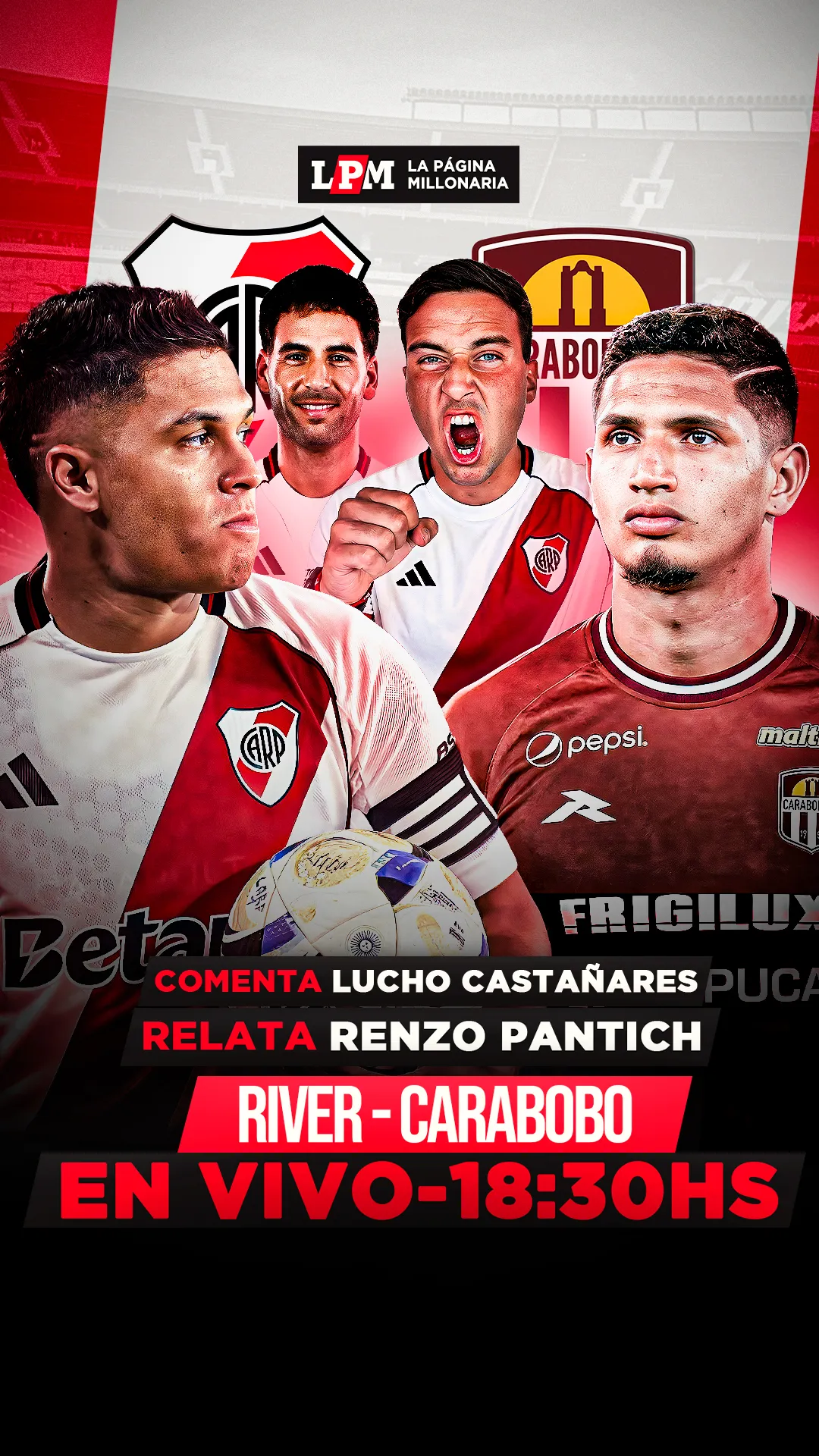 Desde las 21.30, River, que viene de empatar en su estreno frente a Blooming de visitante, enfrentará esta noche a Carabobo de Venezuela en el Estadio Monumental, en lo que será su primer partido como local del año a nivel internacional. Encuentro correspondiente a la primera fecha de la Copa Sudamericana. Vas a poder seguirlo en vivo y en directo en la transmisión exclusiva de La Página Millonaria.