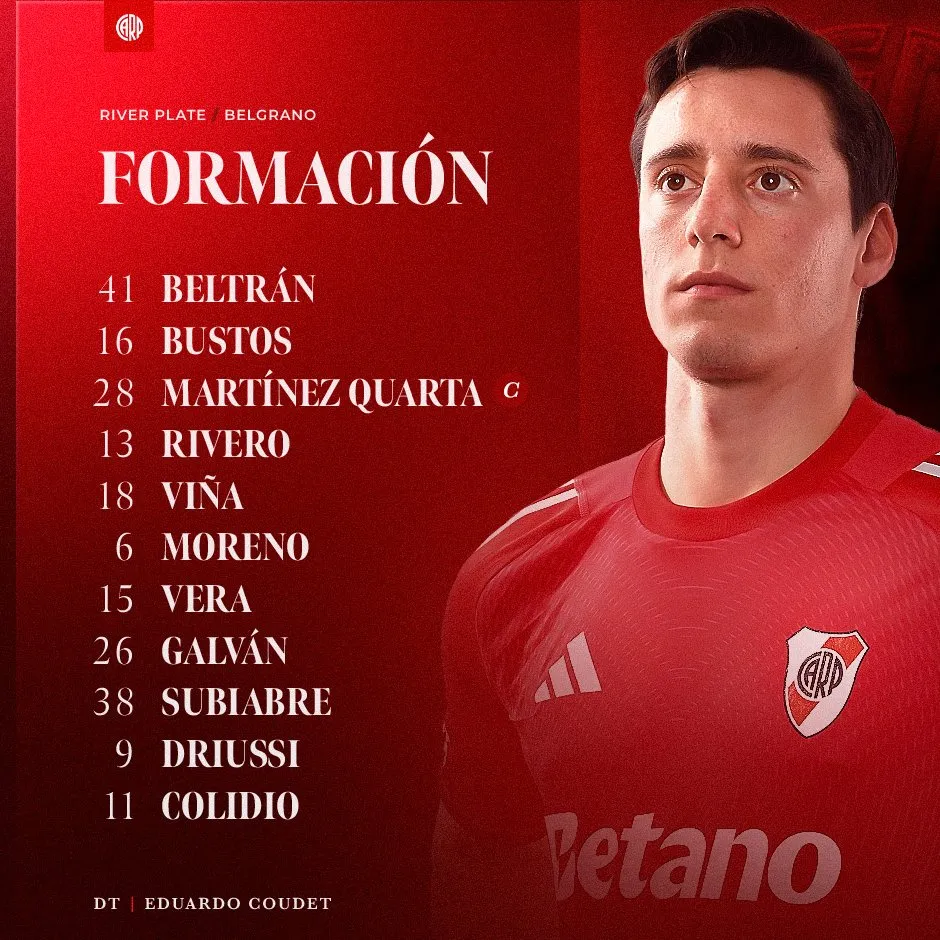 La formación confirmada de River vs. Belgrano
