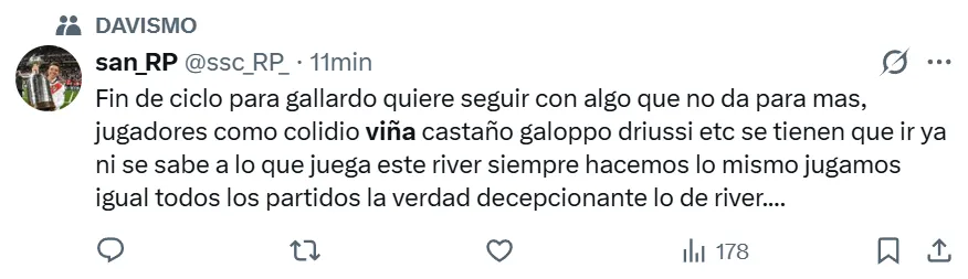 Las críticas de los hinchas de River a Matías Viña