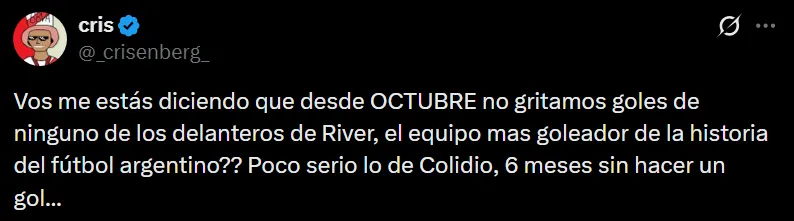 Colidio sigue sin levantar cabeza en River