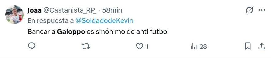No obstante, Galoppo siempre es una alternativa para Gallardo y suele entrar en los partidos. Incluso, últimamente está por encima de Kevin Castaño en la consideración. En Liniers ingresó a los 21′ del complemento, en lugar de Vera, y otra vez tuvo una mala actuación.