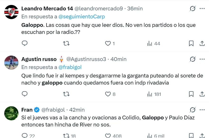 Pocos son los jugadores de River que salvaron en la derrota contra Vélez, y pocos son quienes se salvan de este mal presente futbolístico que se arrastra hace varios meses. Pero uno de los jugadores más apuntados por los hinchas, y a su vez más usados por Marcelo Gallardo, es Giuliano Galoppo.