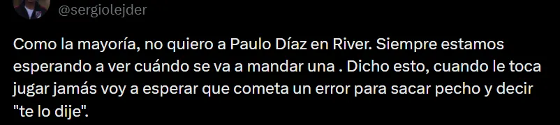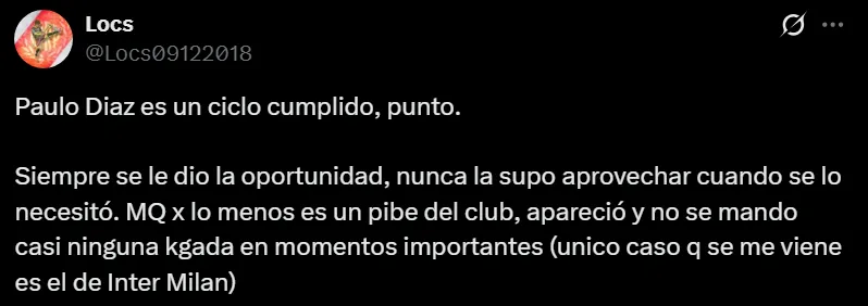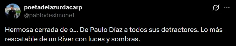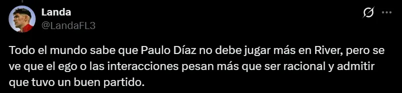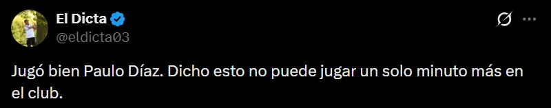 La reaparición de Paulo Díaz frente a Rosario Central en la noche del domingo no pasó desapercibida para los hinchas, ya que durante el mercado de pases fue uno de los jugadores apuntados para irse de River tras no ser una prioridad para Marcelo Gallardo. No solo pasó de tener un pie y medio afuera del club a quedarse, sino que se ganó la titularidad y tuvo un buen partido que generó una alta repercusión en las redes sociales.