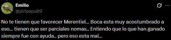 “Fue evidente. Merentiel tuvo un fallido y dijo que siente que no lo han favorecido… Como si tuvieran que favorecerlo”, le habrían dicho desde el Más Grande a dicho medio. En una conferencia que no estaba en la agenda, tres futbolistas del eterno rival salieron a hablar del árbitro como parte de una estrategia previa al superclásico. Curioso cuanto menos…