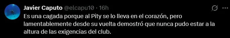 En su cuenta oficial de Instagram, el Pity publicó una serie de tres fotografías suyas durante los entrenamientos de River, en las cuales se lo ve en buen estado. Acompañando el posteo, como pie de foto puso dos bíceps demostrando fortaleza. Lo curioso es que tomó la decisión de limitar los comentarios, por lo que no todos pueden dejarle un mensaje.