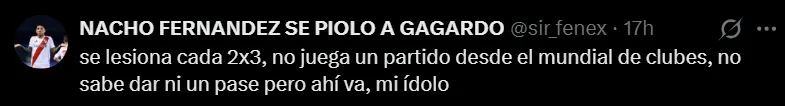 La situación actual de River parece agravarse semana a semana y hay un claro descontento por parte de la gente hacia algunos jugadores que vienen demostrando un rendimiento por lo bajo de las expectativas. Además, hay cuestionamientos a los que no vienen jugando por decisión de Marcelo Gallardo y uno de ellos es Gonzalo Martínez.