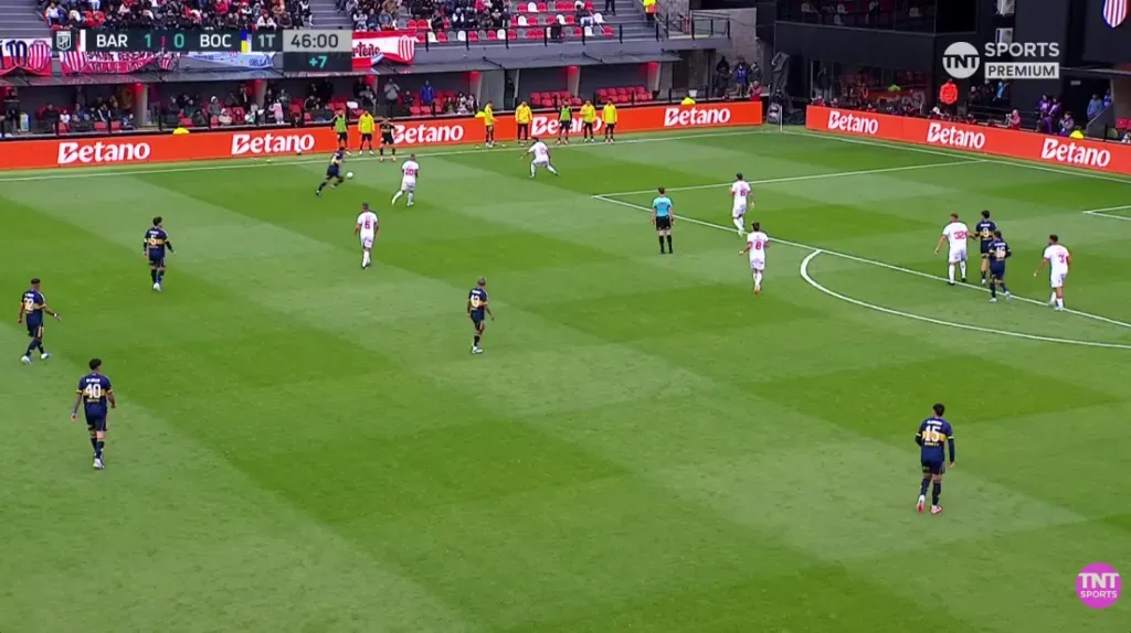 Lencina y Juanfer Quintero rotando por quien realiza los apoyos profundos, Salas fijando y Driussi el enlace, bajando a ayudar al mediocampo. Castaño como primer/segundo receptor y Portillo alternando entre defensa y mediocampo, dependiendo la fase del juego.