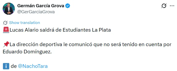 El conjunto platense se destacó sobre el cierre del año al conquistar el Torneo Clausura y el Trofeo de Campeones. Uno de los futbolistas que posibilitó las obtenciones de estos títulos, sobre todo del último, en el que anotó un doblete contra Platense en San Nicolás, fue el ex River Lucas Alario. En las últimas horas, el periodista Ignacio Tara dio a conocer la información de que el delantero de 33 años quedará en condición de jugador libre al no entrar en los planes de Eduardo Domínguez de cara a este año.